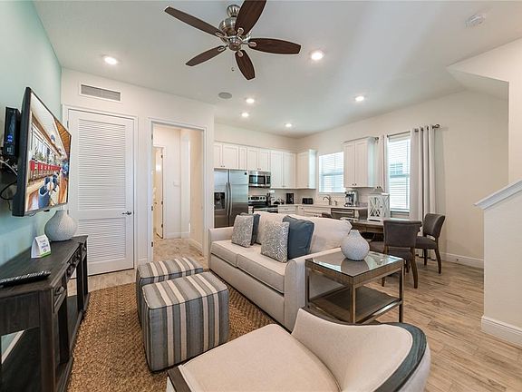 Gorgeous Cottage at Margaritaville Resort Orlando! 1131-B Model 2 Bedrooms, 2 Bathrooms with Upgraded Tile Roof! Primary Bedroom Downstairs with En Suite Bathroom and Door Leading to Spacious Backyard Patio with HOT TUB Overlooking Gorgeous Backyard Landscaping with Beautiful Foliage! Covered Front Porch, Upstairs Oversized Bedroom with En Suite Bathroom and Balcony. Upgraded Appliances, Flooring, Large Capacity Washer and Dryer, Ceiling Fans Throughout, Kitchen with Quartz Countertops! In-Ceiling Speakers in Living Room that Connects to TV or Phone Via App! List Price INCLUDES Furniture and Housewares Package. This is a Wonderful Community to Live in Full Time, Own a Second Home or Invest in a Vacation Rental Property! Includes Blinds, Drapes, TVs, Artwork, Kitchen Necessities, Dishware, Linens, and so MUCH MORE! Unique First of its Kind Resort with Multiple Pools, Gym, On-Site Water Park, Sunset Walk Restaurants Bars, Live Music, Retail, Live Music and More! LOCATED MINUTES FROM DISNEY! It's A Great Lifestyle Choice For Those Who Want To Experience The Best Of Florida Living!