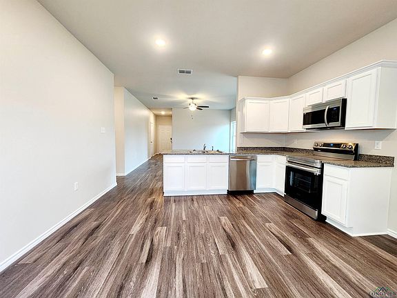 Brand new Conaway Home in Phase 5 of Mission Creek is move-in ready! This energy efficient brick and Hardie-plank home features an open floor plan, landscaping, and a concrete walkway. No detail is missed in this affordable home with trendy color selections, granite kitchen counters, sleek appliances, designer lighting, raised 9' ceilings, easy-clean tilt sash windows, Smart Home features throughout, digital sprinkler system, full sod, and fence! Rest well in your new home knowing it's built with a solid post-tension slab that comes with a 6-year builder warranty! Mission Creek offers a true sense of community with an annual neighborhood Christmas party, underground utilities, and lighted streets. It is located just a half mile from the new Hallsville elementary school and only 2.5 miles from Longview shopping! Call today to schedule your personal showing appointment, and to learn more.