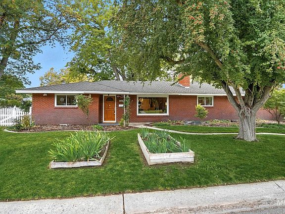 This mid-century gem is ready for you to call home. From the moment you step inside, the house extends a warm welcome with beautifully preserved wood paneling and a wood-burning fireplace. As you move through it, each room invites you to make memories. Enjoy coffee at the breakfast peninsula as morning light fills the home, or host friends and family for the holidays in the formal dining room. Fill the family room built-ins with books or use them to showcase your favorite collection. The outdoor space is perfect for entertaining, with a deck shaded by a huge silver maple and a covered patio for those less sunny days. Fruit trees in the yard provide a bounty of freestone peaches (perfect for pies) and Rainier cherries year after year. Other features include a massive primary bedroom, a spacious kitchen with endless storage and updated appliances (including double ovens and an induction cooktop), a fully vinyl-fenced yard, and flat-rate Capital Water service, just $14/mo in winter and $36/mo in summer! Situated on a corner lot in the desirable Winstead Park neighborhood with easy access to downtown Boise, Garden City, and the connector, this home is a fantastic opportunity to carve out your own little slice of paradise in the City of Trees.