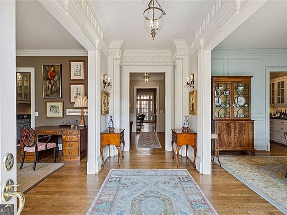 Three story elevatorCustom built-insOld wooden beamsOversized family roomFamily dining roomHeavy moldingsCustom designed walk-in closet