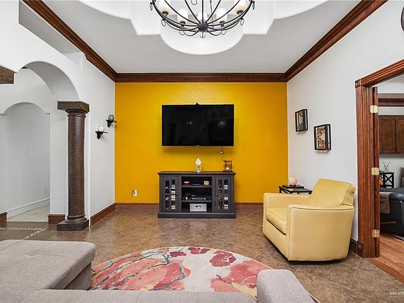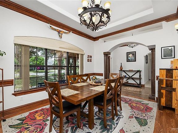 Check out this beautiful, well maintained 5 Bed/ 3 Bath located off of 10th St in McAllen! This 5 bed 3 full bath property boasts dual primary bedrooms, 2 living rooms, a dedicated dining room and wet bar. Beautiful throughout, both primary bathrooms have been updated (2022, 2023). Bedrooms and living areas have unique vaulted ceilings and bedrooms all have ceiling fans. The home is highlighted by a resort style backyard complete with covered patio area, with ceiling fans, and a new beautiful pool (2022). There is a workshop out building and 2 sheds on the property as well as a oversized 2 car garage offers cabinets and open space for plenty of storage. Exterior sewer lines were recently installed (2021) along with new gutters (2022) and a new fence/entry gate on the south side (2021). This location is right off of 10th st near Nolana with easy access to schools, shopping and eateries!