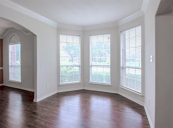 Absolutely adorable house, 1 story open floor plan. large kitchen w lots of cabinets, island, ceramic tile back splash, and electric stove. window sit in breakfast area. All floors are laminate wood except for kitchen and baths where there is ceramic tile. Garden tub, separate shower double sinks in master bath. Split bedrooms arrangement. Nice size back yard and more. Great neighborhood. GISD schools offers choice of school, you can register your kids in Garland, Sachse or Rowlett schools. Close to PGBT, I-30 and Rowlett DART station. Some of the requirements for the prospective tenants are good history of rent, good credit, clean background, no pets, copy of driver license, no history of evictions.