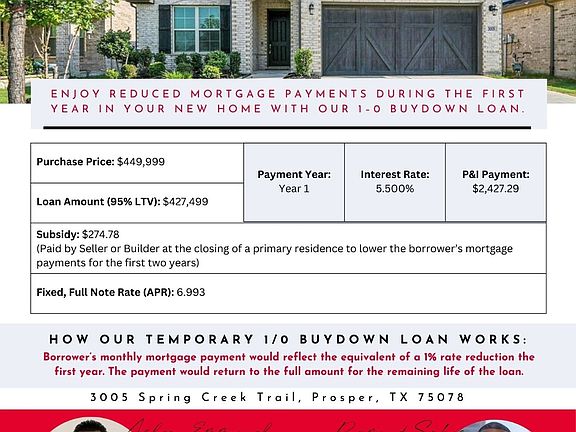 SELLER’S PREFERRED LENDER IS OFFERING A TEMPORARY INTEREST RATE BUY DOWN FOR THE FIRST YEAR. CONTACT LISTING AGENT FOR FULL DETAILS AND ELIGIBILITY. Welcome to 3005 Spring Creek Trail, a well-maintained ranch-style home on a quiet cul-de-sac in the desirable Creeks of Legacy community. This 3-bedroom, 2-bath home features an open-concept layout with a spacious living room, dining area, and kitchen—ideal for both everyday living and entertaining. A dedicated front office with French doors adds flexibility for work or study. Interior highlights include engineered hardwood floors throughout the main living areas and tile in the bathrooms. Zoned to Prosper ISD and the brand-new Smothermon Elementary, Moseley Middle, and Richland High School (opening 2025–2026), this home is a great fit for growing families. Enjoy quick access to Frontier Pkwy, the new Dallas North Tollway extension, parks, schools, H-E-B, Costco, and the upcoming Prosper Arts District. Less than 15 minutes from the future Universal Kids Resort. A fantastic opportunity in a thriving location—schedule your showing today!