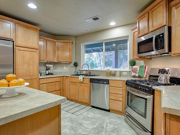 Hard to find PRISTINE home in the country! Nearly 4 acre lot! Built in 2006, open floorpan with vaulted ceilings, great natural light - feels huge! Private window views of towering pines leading out to seasonal creek. Peaceful, covered back patio. Beautiful Master Ste. Oversize 2car garage and large laundry room. Deer fencing around the garden. Room for toys &animals. Free Public Montessori School