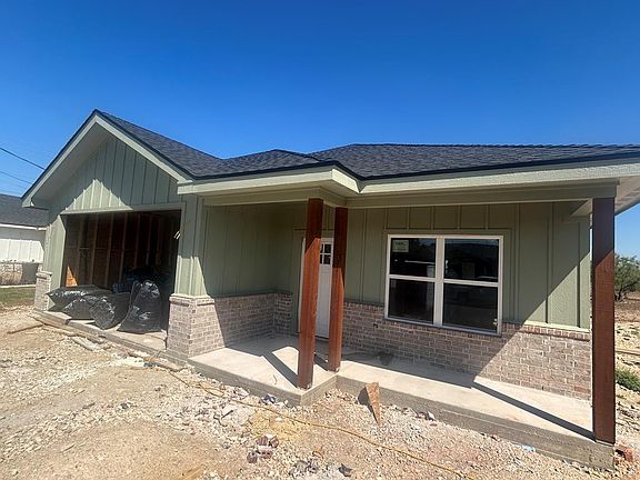 Imagine stepping into your new home for the first time. This brand new, 3-bed, 2-bath home is a comfortable 1,345 sq ft & truly built for the way you live today. Forget closed-off rooms; the heart of this home is the completely open kitchen, dining, & living area. It's a fantastic, free-flowing space where cooking, entertaining, & relaxing all happen seamlessly together. You'll love the curb appeal provided by the stylish board & batten exterior with classic brick accents, giving the home a fresh, modern look. The generously sized primary suite offers a peaceful escape at the end of the day. Outside, the living continues easily with covered patios both in the front & back. The back yard is your private retreat thanks to the privacy fence, & the front yard will be nicely sodded. Practical details like the two-car garage add to the low-maintenance, turn-key convenience. This is more than just a house; it's a beautiful, clean slate ready for you to start making memories.