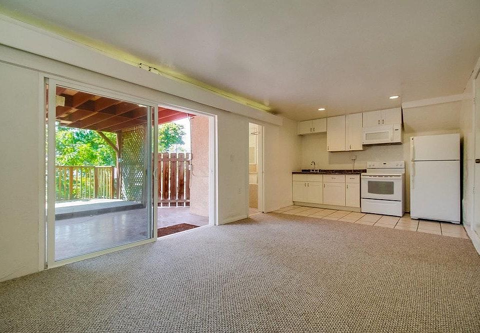 This remodeled studio boasts a giant private enclosed patio (effectively doubling the living space), huge bathroom with a bathtub, walk-in closet, kitchen with full-sized appliances. New carpet, paint, lighting. Gas, electric, trash, water, recycling, landscaping included for monthly $75 utility charge. A cat or a tiny dog under 25 pounds will be considered with references and additional deposit. Please note good credit is a must. It's a lovely apartment. Please email me to see this lovely gem. Gas, electric, trash, water, recycling, landscaping included for monthly $75 utility charge. An adult dog under 25 pounds or a cat may be considered with references and an additional deposit. Please note that excellent credit, current 3x/rent verifiable income, and four years of rental history is a must, and I can't accept cosigners. Please email to see this lovely gem, and thank you!