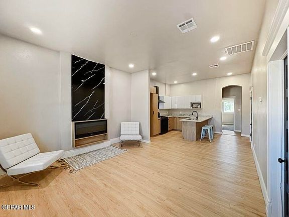 Charming home, this home sits on a large lot with alley access. It is near the intersection of Paisano and Piedras and El Barrio Park recreation facility. Historic home with a modern touch. Features high ceilings, fine woodwork, and a beautiful fire place. New roof, new kitchen, new appliances, new fixtures, beautiful fully remodeled bathrooms, new refrigeration, new windows, new tile, freshly painted inside and outside. Lots of space to create a beautiful back yard and park all your vehicles.
