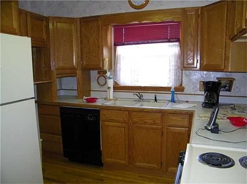 Handyman needed for a project house! This home needs TLC, build equity with some elbow grease. 3 bedrooms, 2 baths, country style oak kitchen, appliances in the home stay, lower level family area, fenced yard, 2 car attached garage, storage