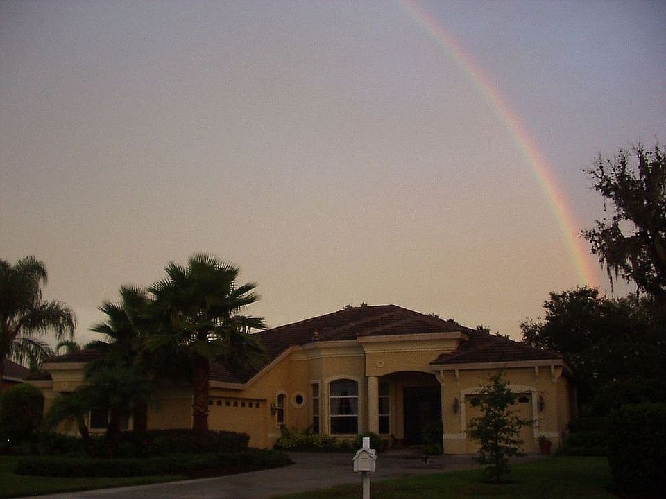 Mediterranean features, pool and hot tub inside screened lanai, corner lot, each bedroom is in its own corner of the house, large office with built in desk and shelves, card room, 2 car garage and an extra garage on other side of driveway that is air conditioned/heated, large windows throughout the house, new tile roof