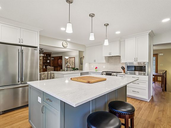 Formal dining roomFinished lower levelHobby roomMature treesUpdated kitchenTiled backsplashLower-level patio