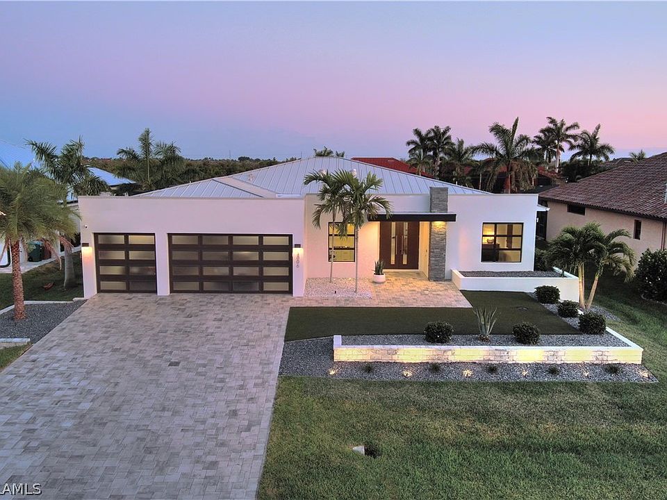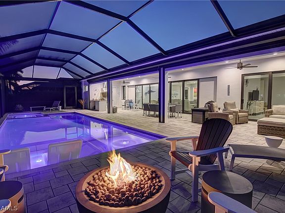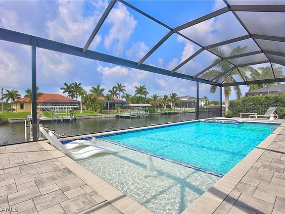 Discover unparalleled luxury gulf-access living in this exquisite contemporary pool home nestled in the sought-after Surfside neighborhood of SW Cape Coral. Featuring 4 beds (2 suites), 3 baths (including convenient pool bath), and a designated office with built-in desks, this 2020 custom-designed residence offers nearly every feature you could desire. From the moment you enter, a wall of double pocket sliding glass doors provides instant views, inviting you to experience the ultimate in indoor-outdoor living. Step outside to your expansive picture window lanai, running the width of the home, providing ample space for entertaining or enjoying a warm fire on cool evenings. Southern exposure ensures full sun on the pool year-round. The heated 16 x 34 saltwater pool and spa with a 6' sunshelf beckon for relaxation. A covered outdoor living area encompasses an outdoor kitchen/bar, dining area, and living space, perfect for al fresco dining and entertaining guests. For the outdoor enthusiast, a composite dock with 10K Lb lift, a captains walk, complete with a kayak launch, and a canal front lower level paver patio, await. Peace of mind and energy efficiency were requirements in the planning of this wonderful home. From impact-resistant windows, electric Kevlar rolldown hurricane screens for the covered lanai, a 500 gallon buried gas tank, a Generac 22 KW whole house generator, a 16 KW whole house solar system that nearly eliminates your electric bill, EV plug in garage, Lennox 2 zone HVAC system with 2 Pure Air filtration systems/UV lights, whole house Kinetico water softer system, on demand, tankless water heater, exterior security camera system, low voltage sunset to sunrise landscape lighting throughout yard and dock, and much more. Inside, luxury abounds with a showcase kitchen, complete with a large island, a chef’s dream 6 burner, dual oven range, beautiful countertops, and custom cabinets. Adjacent to the kitchen is a pantry / laundry room for any additional storage needs. Beautiful tile flooring flows throughout the home and every bathroom was wonderfully designed with walk-in showers, beautiful tile work, and quality cabinets/counters. With a 3-car garage featuring an epoxy floor, custom cabinet workbench, and electric rolldown storage system, this home not only offers luxury, but also practicality. For absolute convenience, furnishings are negotiable. Don't miss this opportunity to own a truly exceptional, one-of-a-kind home in one of Cape Coral's most desirable neighborhoods.
