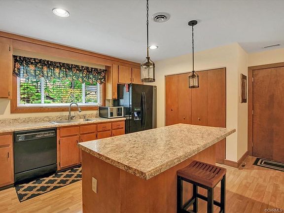 One Level Rustic Contemporary Ranch nestled on a cul-de-sac lot in the heart of Brandermill! You will love the Open Floor Plan and multiple Covered screened Porches this home has to offer! Large Eat-In Kitchen has updated flooring, lighting, countertops and Sink! The Great Room features a Cathedral Ceiling and a Floor to Ceiling Fireplace! Dining Room can also be used as a Playroom/Office! Master Suite features a walk-in-closet, separate dressing area! Charm and Character throughout! There is also a One Gar Garage, Detached Shed. Newer HVAC, Flooring, Appliances and Lighting!