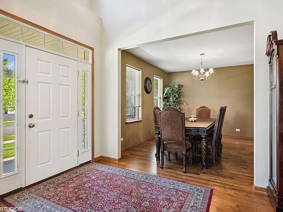 Step into the charm of Providence living, nestled within the sought-after Burlington 301 School District. This expansive Caverly floor plan unfolds over 3600 square feet, offering both space and style. The main floor features a soaring two story foyer, a welcoming kitchen is truly the heart of the home with plenty of cherry maple cabinetry, an island with extra seating, butler's pantry and a suite of top-of-the-line appliances, including a double oven, cooktop, microwave, refrigerator, and dishwasher. Adjacent to the kitchen, a sunlit casual dining area beckons with sliding doors leading to the maintenance free deck and stairs to the big backyard, perfect for al fresco dining and entertaining. Cozy up in the family room, where a crackling fireplace sets the scene for intimate gatherings and lively conversations. Need a quiet retreat? Slip into the main floor office for a moment of solitude. A convenient laundry area with second refrigerator completes the main level. Upstairs, discover a sanctuary in the form of five bedrooms and the sprawling master suite is a haven of luxury, featuring a private sitting area and a serene spa-like ensuite. Dream of future possibilities in the full walkout basement, already plumbed for a bathroom and awaiting your choice of flooring. Outside, the fenced yard and brick patio offer an oasis for outdoor enjoyment. Embrace the Providence lifestyle, where winding trails, parks, and tennis courts await your exploration and Prairie View Elementary & Prairie Knolls Middle School are just moments away, this is more than a home-it's a destination. Don't let this opportunity slip away!