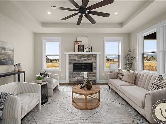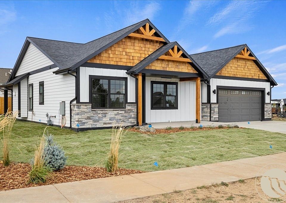 2025 Parade Home by Trailhead Builders – fully landscaped & move-in ready! Nestled in The Spires at Red Lodge, this gorgeous single-level home offers 1,610 sq ft with 3 bedrooms and 2 baths. The timeless black-and-white farmhouse exterior features cedar shakes, Hardie® cement board siding, and clean architectural lines. Inside, enjoy 9-ft ceilings, radiant in-floor heat, a cozy gas fireplace, and an open-concept design. The kitchen includes Bosch appliances, Dekton countertops, and Cashew-stained cabinetry. The spacious primary suite boasts a tiled walk-in shower and oversized closet. A heated 2-car garage with extra storage and fully landscaped yard add convenience. HOA is $300/year. Stunning views of the Ski Mountain complete this modern mountain retreat just minutes from Red Lodge amenities.