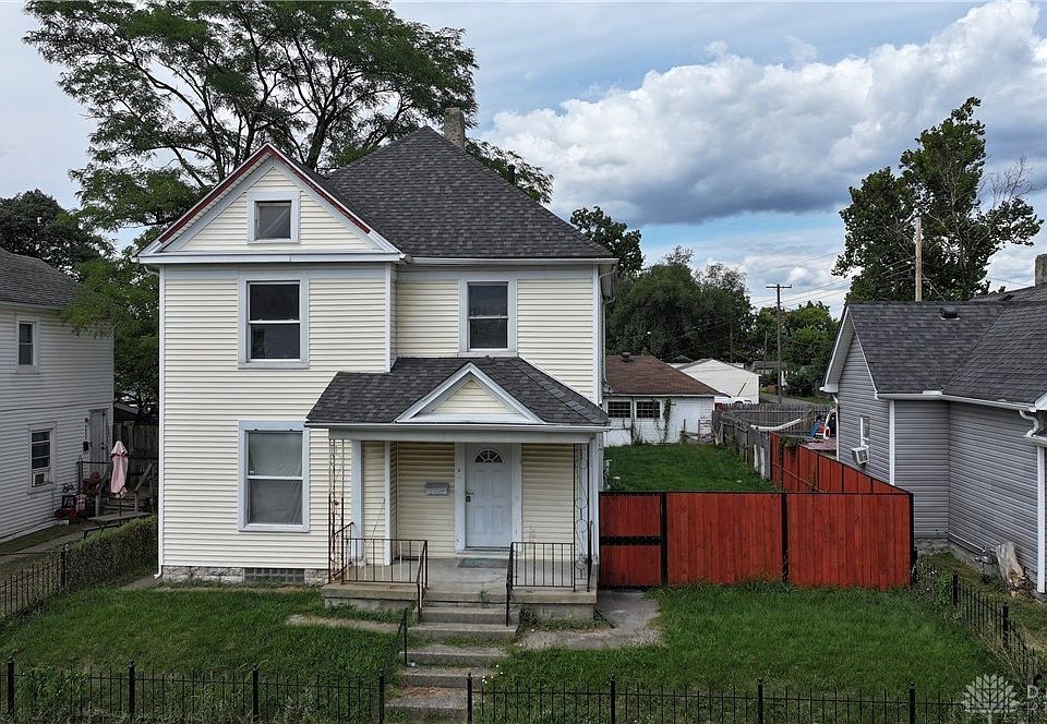 The property is a working progress being sold as is. 10 foot tall ceilings, with a large great room/ living room, plenty of room in the kitchen location for a large island and breakfast nook. Laundry has space for a restroom and laundry mix. Good sized rooms on the second floor, and a full attic. Good sized yard with a 2 car garage and parking in the back that is currently blocked. The back yard is fully fenced in by a privacy fence.
