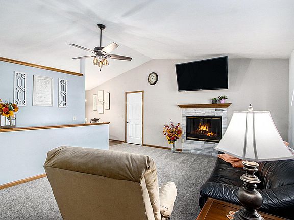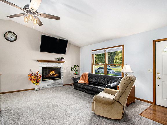 Cozy gas fireplaceFinished basementRec room with egressVaulted ceilingWater heaterNew carpetAmple storage