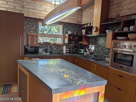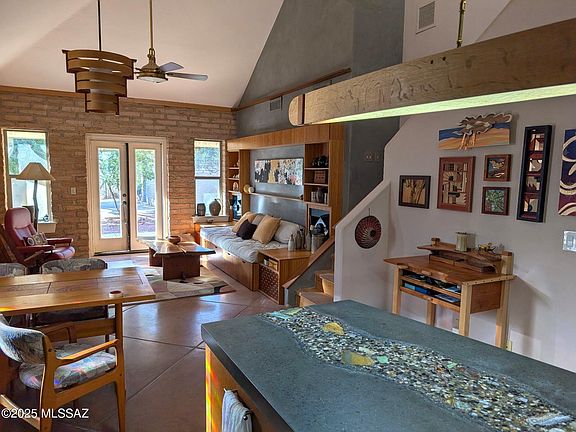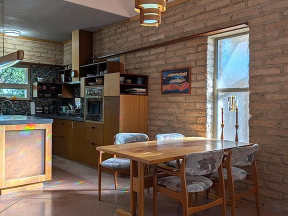 Enter a peaceful, calm sustainable work of art. Thick mud adobe walls mute the sound and insulate against the heat. Lower floors are polished concrete and upper floors are pine. Main house is 3 BR, 2 bath. Casita has is a studio bedroom with bath. Comfortable spaces for family, guests, office or workshop. Open living area flows from kitchen to dining to living to backyard to casita. Common areas include salt water pool, common house with community kitchen and laundry facilities, workshop and EV charging! Learn more about intentional community living at MilagroCohousing.org website.
