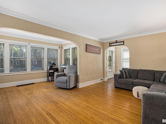 Welcome to 3007 N. Sheridan in Peoria, IL. This 1.5 Story Home Features Hardwood Floors, Arched Doorways and Crown Molding Throughout. Updated Eat-In Kitchen with a Charming 7x5 Nook off Kitchen and Formal Dining Room. Spacious Master Suite on Upper Level with a Walk-In Closet, Full Bath and a 13x11 Walk-Through Room--Perfect for a Nursery/Office/Craft Room. Hallway Laundry Shute. Basement has a Partially Finished Area for Rec Room, Laundry Room, Utility Room and Storage Rooms. Water Heater and New Plumbing 2025. Fireplace in Living Room is Decorative and Not Warranted. 2-Car Detached Garage. Fenced Yard. Patio w/ Firepit. Updates Include: Water Heater, New Plumbing, Microwave, Front Decking on Porch, New Sump Pump, Bathroom Remodel, New Washer, Garage Door Springs Replaced and Shelving Added. All Measurements Approximate.