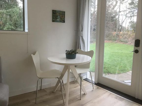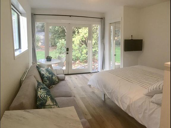 This studio is fully furnished, detached in the backyard of our house, and it has a large fenced yard. Kitchenette has small fridge, microwave, and mini oven are all a good size for one person. This studio also comes with an adjacent office/sitting room (a flexible living space) adjacent to the studio and it's finished out and is a cozy space. Centrally located, 1 minute to the hospital, 5 minutes to Trader Joes. Rent includes all furnishings and utilities: water, sewer, garbage, electricity and internet Lease terms, ie monthly or 12 month lease is flexible. The lease includes all utlities including, electrical, internet, water, sewer, garbage, street parking. One pet is allowed on a case by case basis. We love animals and have a small dog ourselves who is happy to share the backyard with a respectful furry friend.