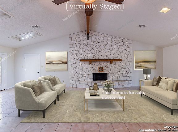 This charming home is the perfect blend of modern amenities and classic style. A natural color palette creates a warm and inviting atmosphere, while fresh interior paint adds a touch of sophistication. The living room is highlighted by a cozy fireplace, and the kitchen is equipped with a center island for added counter space. Flexible living space is provided by other rooms, making this home ideal for entertaining. The primary bathroom has good under sink storage for added convenience. Outdoors, a fenced-in backyard and a sitting area provide plenty of space to relax and enjoy the outdoors. This home won't last long, so don't miss your chance to make it yours! This home has been virtually staged to illustrate its potential.