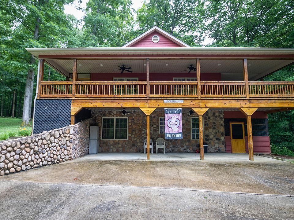 This beautiful lake community home sits on 3 lots (2 in HOA, 1 outside HOA). With more than 2 acres and backing up directly to the Daniel Boone National Forest, this property will offer you the quiet get-away vacation home, a serene full-time residence, or a great rental property. Located in the patrolled and gated community of Lake Cumberland Resort in Burnside, KY, you will be welcomed by the gorgeous views and abundance of wildlife. Enjoy sitting on the wrap-around porch or in the screened in lower level while being surrounded by only the sounds of nature. Plenty of space with 3 BR and 2 BA. LARGE detached garage (28' x 64') accommodates all your lake/outdoor toys. Located only a couple minutes from the area boat ramp, three community pools, and a tennis court. This very well-maintained home is truly a must see. Don't let this one pass you by. If you put the home in a rental program, the home can help pay for itself.