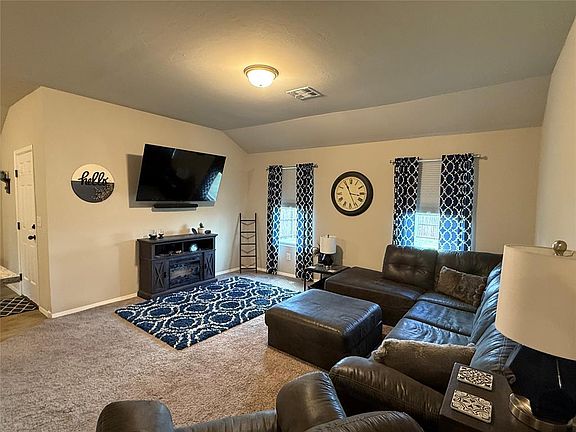 Immaculate brick home built in 2021 in Shadow Valley. This home features 3-bedrooms and 2-baths. This home features an open-concept layout, luxury vinyl plank flooring, and a 2-car garage. The kitchen includes a breakfast bar, separate dining area, gas range, built in microwave, dishwasher and a stainless steel sink, The pantry is located in the laundry room. The refrigerator stays too! The primary suite offers a walk-in closet, oversized shower, and makeup vanity. Enjoy energy-efficient shades throughout, oversized closets in the secondary bedrooms, and a second full bath with a tub/shower combo. The backyard is ready for outdoor living with a covered patio, 6-ft privacy fence, Tuff shed on a concrete slab, and an in-ground storm shelter.