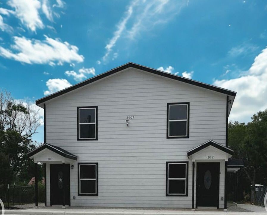 Introducing an exceptional opportunity to own a new construction modern condominium, perfect for families and investors alike! This stylish 3-bedroom, 2-bath starter home is designed for comfortable living and comes equipped with brand new appliances that elevate your living experience. Each bedroom features efficient ceiling fans, ensuring a cool and pleasant atmosphere throughout. The kitchen boasts modern hardware, ample storage, and the latest appliances, making meal preparation a delight. Additional space can be found in the upstairs attic, providing extra storage solutions. With two of the condos currently occupied by tenants, you can start generating rental income immediately. This property offers the potential for growth with adjacent lots available for purchase, allowing for the development of a multi-family fourplex or more, significantly increasing your return on investment (ROI). Located in the vibrant Southside community, you'll be just minutes away from Texas A&M University, Palo Alto College, South Park Mall, JBSA-Kelly, the Toyota plant, San Antonio Missions, and HEB Plus. Live in one unit while renting out the other and take advantage of this prime real estate opportunity. Imagine the possibilities that await you!
