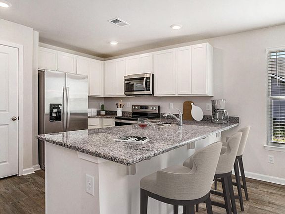 This thoughtfully designed one level home with a single car garage has everything you need for your beach retreat! With an open concept living room dining room and kitchen, this home is bright and spacious. The kitchen offers granite countertops, 36'' cabinets, a tile backsplash, pantry, stainless steel appliances including a refrigerator, and breakfast bar! Your primary suite awaits off the back of the home with a spacious walk-in closet and master bath with a 5' shower. Three secondary bedrooms are separate from the owner's suite offering privacy. Enjoy the coastal air on the back cover porch! This is America's Smart Home! Each of our homes comes with an industry leading smart home technology package that will allow you to control the thermostat, front door light and lock, and video doorbell from your smartphone.
