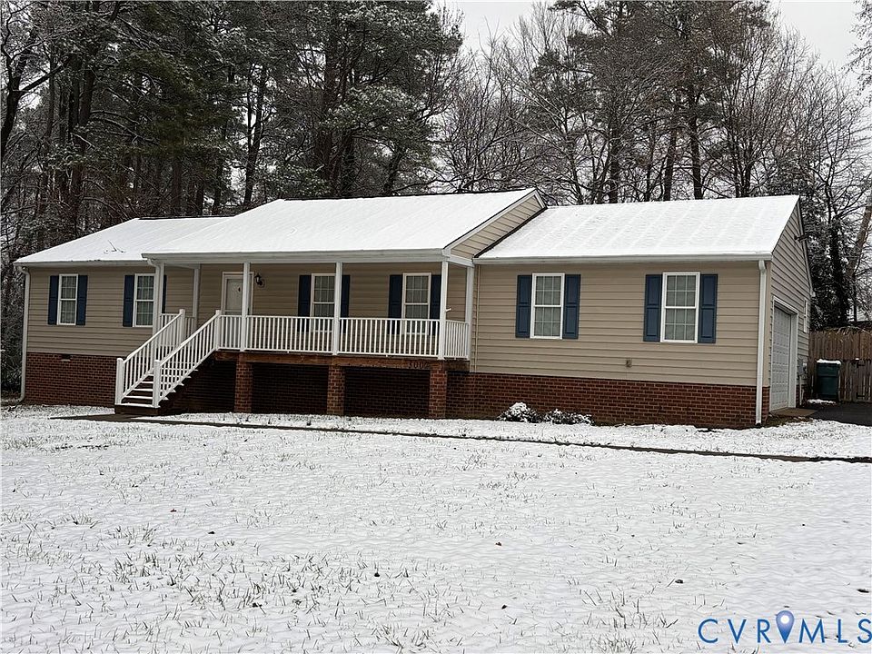 This nice-sized ranch home sits on more than an acre lot and assures maximum privacy. Built in 2017, the current owner has added a number of improvements in the past couple of years, including a wonderful tub-to-shower conversion in the primary bathroom, adding heating/cooling to the insulated and drywalled garage, a paved driveway, and fenced back yard. The public rooms are open concept, perfect for entertaining and family gatherings, where the gas logs fireplace can be enjoyed from any angle in the great room, kitchen, and dining room - fabulous for this time of year. Check out the walk-in pantry and the walk-in bay windows. The SECOND KITCHEN is a nice bonus for those who are in need of it. All bedrooms have separate switches for overhead lights and ceiling fans. In the rear primary bedroom you'll find a lighted walk-in closet and full bathroom with that wonderful shower, which features multiple showerheads, drop-down seat, and glass doors. There are a number of outdoor spaces, as well. The exterior door between the two kitchens leads to the deck, patio, and fenced back yard. Or, enjoy the day from the front country porch, which overlooks woods and an active creek. The long lot line lies alongside the creek with a small patch of wetland. While quietly located on a side street, this home is near shopping, major roadways, and more. Come and make this treasure your own. Welcome home!