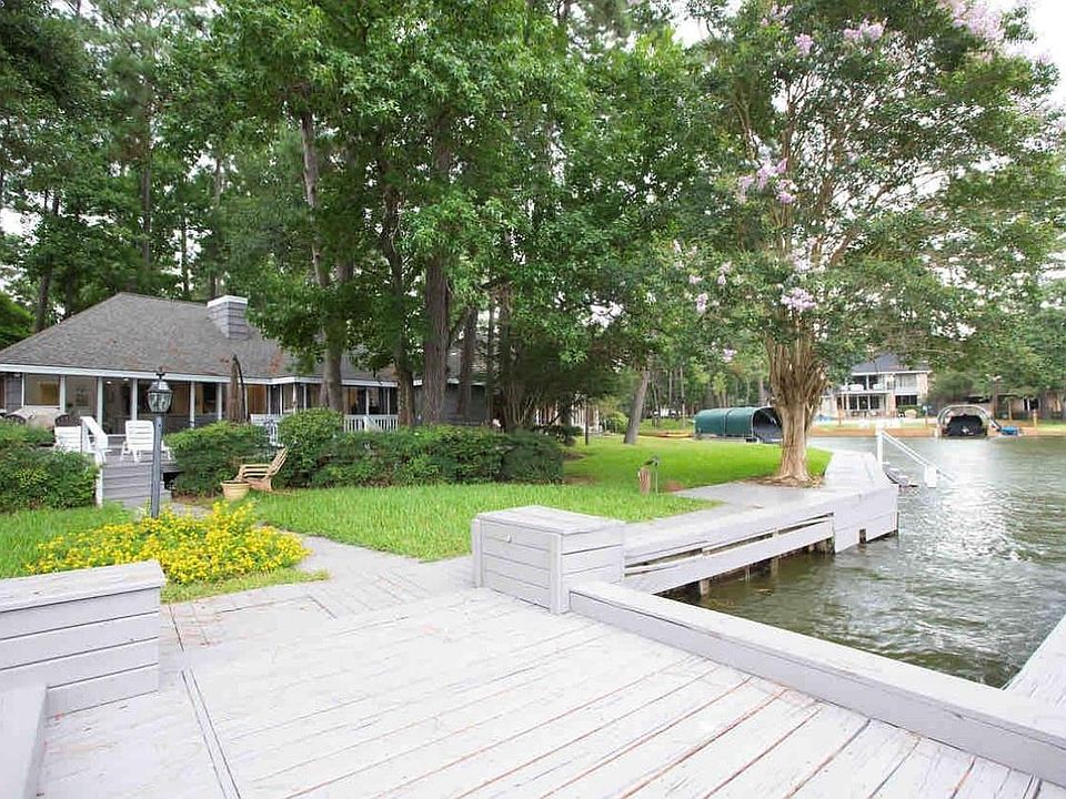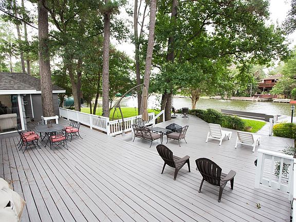 Fully furnished 5bd/3ba home, Lake & Deck living at its BEST! 108ft of waterfront living. Enjoy quiet conversation as the sun sets. Fire up the grill and settle down to an al fresco dinner under the stars, float in the lazy cove, bring your boat and jet ski(s) or bring the gathering in to the fully equipped kitchen, long serving buffet, real wood fireplace and large dining room. Plenty of room for the kids to head up the spiral staircase and hang out. Walden Golf Club just down the street w/some of the best golf in Houston.