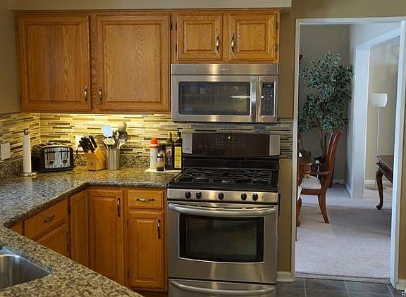 Welcome home to this inviting and spacious colonial located in the sought after, family friendly Rolling Oaks community. Well maintained, backing into expansive commons complete with neighborhood park in view from family room, this home boasts an updated kitchen with granite counters and newer SS appliances, A/C and furnace 3 years young, family room and adjacent great room/dining room with exotic brazilian walnut wood floors, newer deck off breakfast room, professional landscaping, tree house and ZIP line! Large family room has gas fireplace, cathedral ceiling, a wall of windows and skylights to fill the room with light. Adjacent room makes a great dining room that offers a second fireplace, wood flooring and is large enough to seat 20 with ease for entertaining. Follow the beautiful wood staircase up and you will find spacious master with double closets,updated master bath vanity with granite counter and large shower, Three bedrooms each with large closets. This home is easy to show!