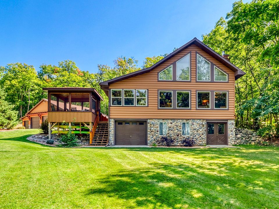 Pride of ownership shows through in this 4 Bed 2 Bath Big Sugar Bush Lake home. Year-round ready and no detail overlooked. Take in the cozy lake views from the large sun room, the enclosed 12x12 gazebo, or the kitchen table! Top notch detached garage/shop has 4 stalls and is fully heated and insulated. A beautifully planned 1.5+ acre parcel features hard sandy swimming, and a private creek! BONUS 11kW Generac Generator connected. Located in a quiet bay of the lake, you've found your place to escape the noise!