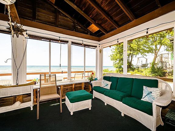 50 ft of direct Lake Michigan Frontage. 100% protected with a new seawall and revetment. Newer septic, roof, decks etc. Short term rentals are allowed in this community. Nightly rental rates are $2000 a night. This home comes turnkey with new mattresses and gently used, high end furniture....