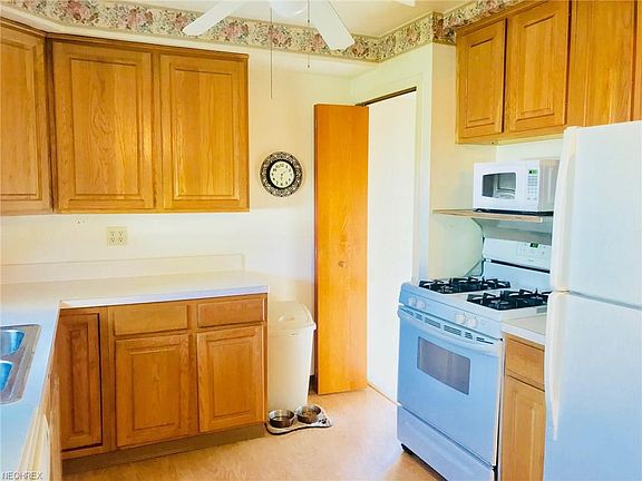 Beautiful Bungalow is Violation Free with City of Wickliffe! Generous living room with hardwood floors under carpet. Two bedrooms and an update full bathroom are also on the first floor. Dining room offers enough space for a large table. Updated kitchen includes vinyl flooring, pretty oak cabinetry, dishwasher, fridge & stove! Second story is a real find! Large bedroom with built ins galore! An additional sitting room or smaller tandem bedroom is a Bonus! Lower level has cold storage room, laundry and HVAC. Finished Rec Room provides secondary living space! Many updates include: Roof & Windows 2006, Furnace 1989 + New Blower Motor 2016 & Glass-block 1989. Washer & Dryer Stay too! 2 Car Detached Garage. (A/C doesn't not work, sold as is).
