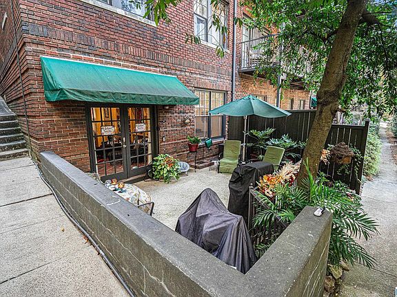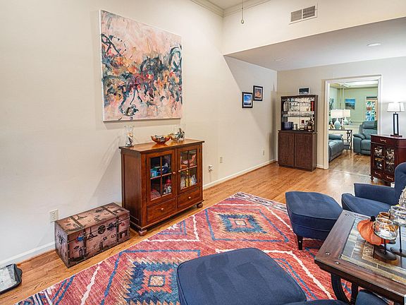 Welcome to The Avalon! Historic building located just around the corner from Rushton Park, Rojo & O'Henry's! Enjoy the amazing back patio that doubles for entryway w/close parking behind the unit. Formal living room greets you w/10+ foot ceilings, custom built-in, fresh interior paint, beautifully refinished hardwoods & lighting throughout. Formal dining is currently being used as tv den, but easily converted back. Kitchen updated w/new cabinets that included custom slide outs, granite countertops, tiled backsplash, new stainless appliances & coffee bar. Laundry w/storage & walk-in pantry w/shelving. Primary bedroom w/custom built-ins, 2 closets, ensuite w/double vanity, tiled shower, anti fog mirror & smart bidet. The 2nd bedroom features a desk/Murphy bed combo that will remian & is perfect for an office or guest space. The full hall bathroom was recently renovated w/new tile, shower, vanity & smart bidet. You will love relaxing in the afternoon on this amazing patio w/new railing.
