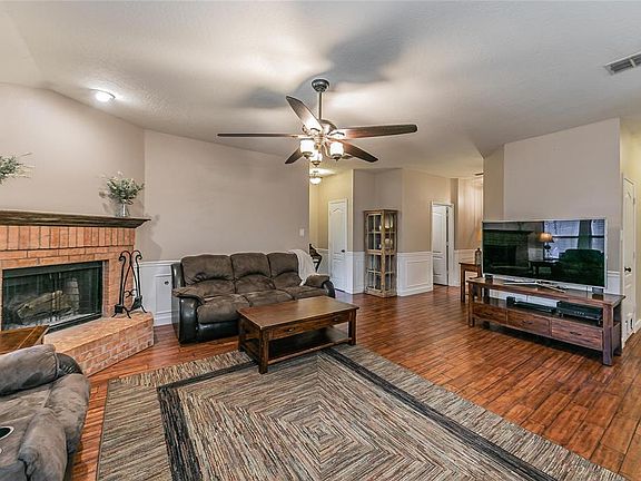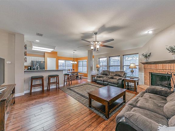 Look no further! Gorgeous, well maintained and updated single story in an ideal neighborhood. Spacious, open floor plan with an easy flow. Ample sized family room has wood burning fireplace with gas starter. Family room is open to the kitchen and dining area making this home ideal for entertaining. Split bedrooms. Owner's retreat located at the back of the house features large dual vanities, garden tub, separate shower & spacious walk in closet. Updates include beautiful hardwood floors, designer light fixtures, wainscoting, custom woodwork in owner's suite, and more. Convenient location close to I35E. Come check it out!