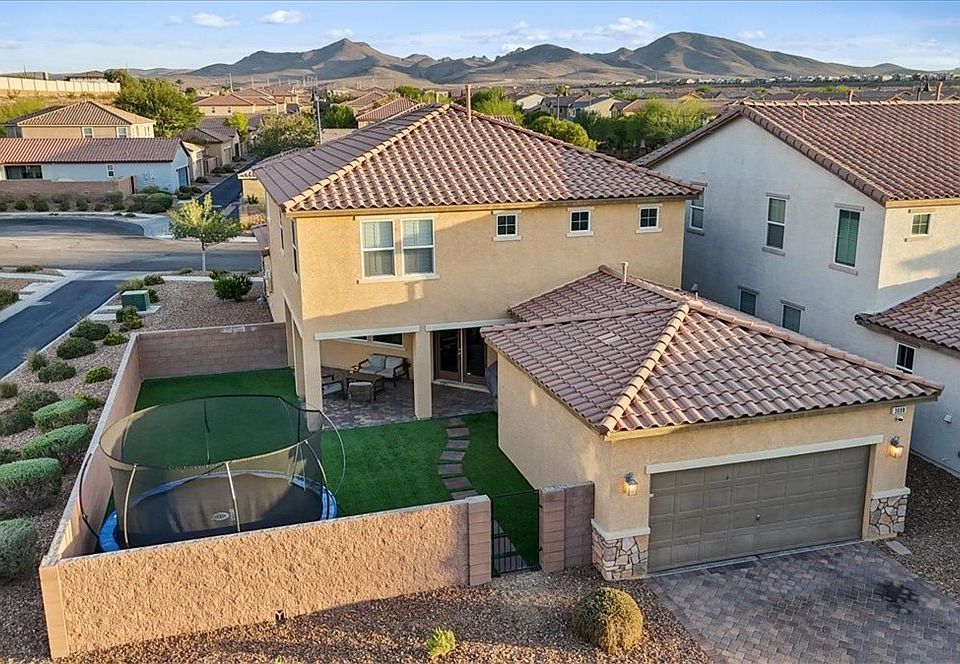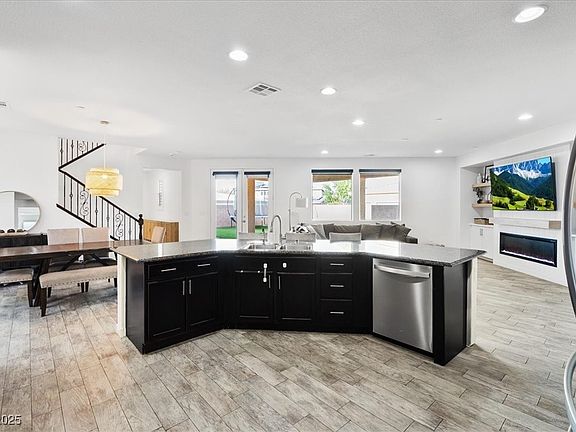 A rare offering in Inspirada, this 3,151 sq ft residence blends elegance and livability on one of the community’s largest lots at 6,970 sq ft, with the added luxury of a full-length driveway. Designed with comfort and style in mind, the open layout highlights a gourmet kitchen with granite counters, rich cabinetry, stainless appliances, and breakfast bar seating, all flowing seamlessly into a spacious family room with custom fireplace and built-ins. Flexible living spaces include a loft and multi-use rooms; the primary suite is a true retreat with spa-inspired bath, walk-in shower, and dual vanities. Outdoors, the private yard features a covered patio, synthetic turf, and abundant space for entertaining or quiet relaxation. Living here means enjoying Inspirada’s renowned amenities, including resort-style pools, splash pads, parks, trails, and community events, along with top-rated schools, nearby dining, and the convenience of Henderson living.