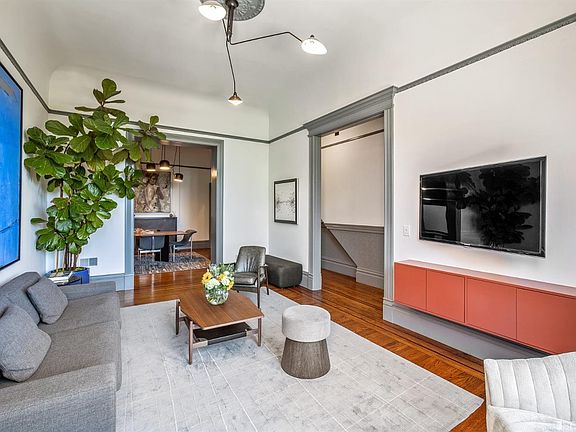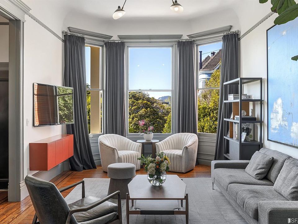 Exquisitely renovated, this true house-like condo, offers two levels of living and 3 bedrooms 2.5 baths. Situated on a lush tree-lined street in the heart of Pacific Heights it's a short walk to Alta Plaza, Fillmore and Sacramento Streets. The gem of the home is the shared backyard, by Boxleaf Design, accessed through French doors off the eat-in kitchen. Complete with a fountain, firepit, and verdant landscaping, the garden setting offers a tranquil balance of indoor/outdoor California living. The recently renovated interior showcases designer touches mixed with Victorian details, including dramatic ceiling heights, Elitis wallpaper, calcatta, and carrara marble, Waterworks fixtures, Sub Zero and Thermador appliances, built-in Miele coffee machine, and a walk-in temperature controlled wine cellar capable of holding 500 bottles.