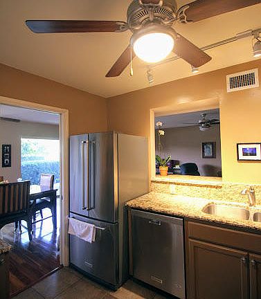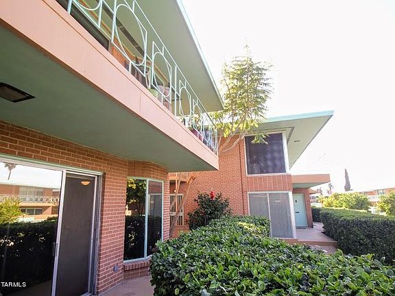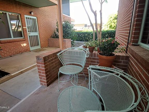 Gorgeously remodeled condo in Tucson's premier mid-century 55+ community. Situated perfectly within the Villa Catalina Apts, this unit has been lovingly remodeled with taste & style, AND for handicap accessiblity! Widened doorways, safety bars in showers, a nice low granite countertop in the kitchen, with lovely wood floors, all freshly painted with designer colors. Lushest most lovely landscaping in town! Don't let the HOA alarm you. Homeowners get so very much for this monthly fee: it pays electric, HVAC & heat, water, taxes, garbage collection, gorgeous grounds and pool, and reserves. Cable will be your only bill! Front, back, and side patios are sweet. Truly carefree living! Note: only certified companion/therapy dogs are permitted.