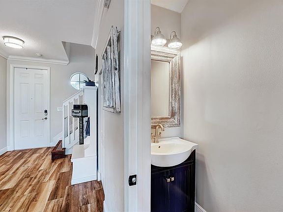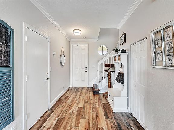 Absolutely beautiful and completely remodeled townhouse located in highly desirable Parkside Village/Quantum Park. This move in ready home features wood look tile floors on the first floor with vinyl flooring on the stairs and second floor. The kitchen boasts lovely quartz countertops, Maytag appliances, double oven, and plenty of cabinet space. To add to all of the incredible upgrades, this is one of the only units with a fully permitted fence out back giving you added privacy but still allowing views of the canal behind you. Laundry is conveniently located on the second floor with the 3 bedrooms and both full bathrooms were remodeled in 2022. Parkside Village amenities include a pool, playground, and pickleball.