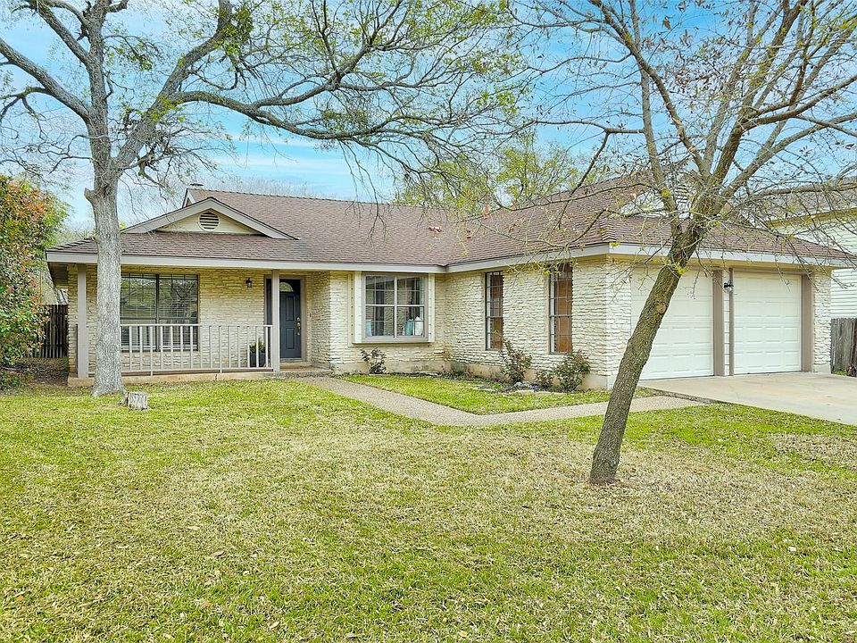 Adorable single story 3/2/2 home in the heart of Brushy Creek. Zoned to fabulous schools. Single story plan with welcoming front porch. High, vaulted ceilings and wood plank laminate flooring throughout main living spaces. Dining room/flex space with large windows. Stone corner fireplace in family room. Sunny breakfast area with bay window leads to the spacious kitchen with freshly painted white cabinets, granite countertops, and stainless steel appliances. Owner's suite features a vaulted ceiling, two closets, and dual vanity & a walk-in shower in the bathroom. Fresh carpet in bedrooms. TV mounts in living, master and garage. New roof. Lovely fenced back yard with covered patio and storage shed. Refrigerator, washer and dryer included. Convenient to I-35 and 45 Toll.