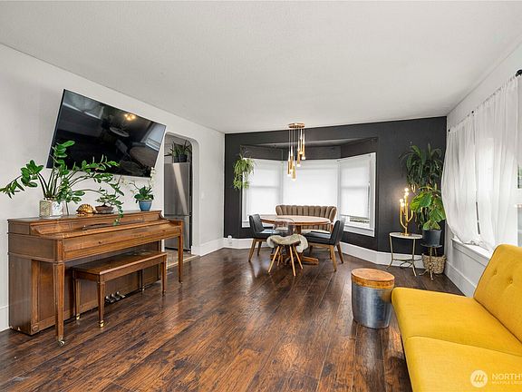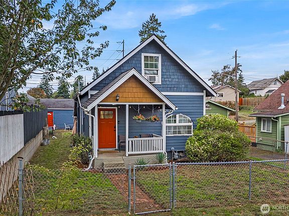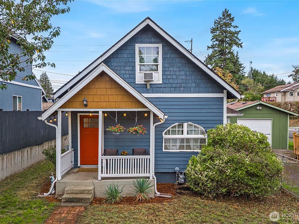 Large kitchenNatural lightDetached garageRaised garden bedsPartially fenced yardSpacious bay windowCovered porch