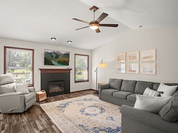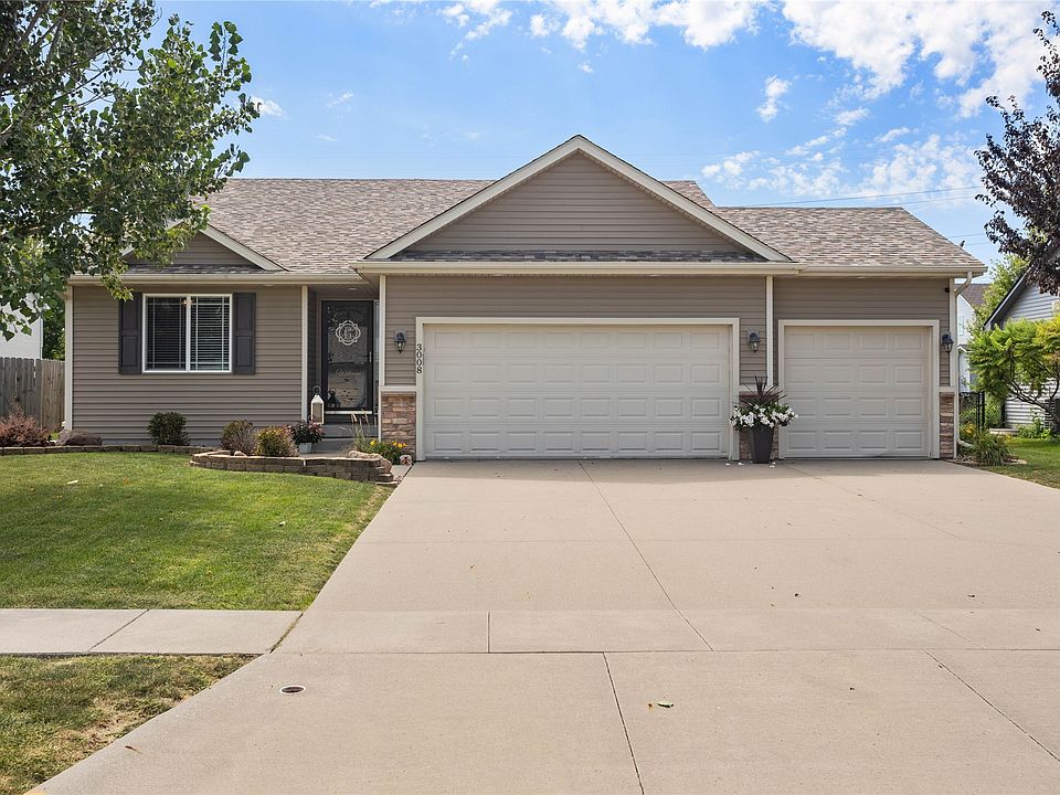 Welcome to 3008 SE Weatherstone St in Grimes! This inviting ranch-style home offers over 2,200 sq ft of finished living space with 4 bedrooms and 2 bathrooms, thoughtfully designed for both comfort and functionality. Inside, you'll love the open floor plan that seamlessly connects the main living areas, perfect for everyday living and entertaining. The main level features warm-toned LVP flooring, newer carpet in bedrooms and fireplace with black tile. The kitchen has two-toned white and blue cabinetry, a pantry cabinet and quartz countertops. Downstairs, the finished lower level is a great retreat for movie nights or game days, complete with a wet bar and refrigerator, additional bedroom, and a non-conforming office or flex room. This home offers peace of mind with major updates already completed including a renovated primary bathroom (2025), AC and furnace (2019), a newer roof (2018), black fenced in backyard (2024), and a newly stained deck (2025). Outside, enjoy the mature trees, updated landscaping, and 3-car attached garage. Located near schools, parks, and trails, this home perfectly blends style, space, and convenience...Ready for you to move in and make it your own. All information obtained from seller and public records.