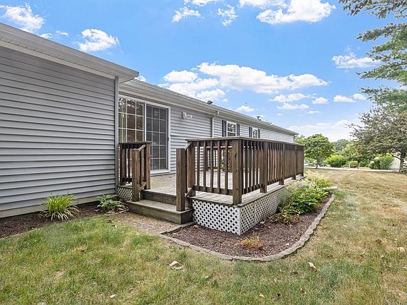 Very well cared for & maintained home in Oak Point 55+ community. Move in ready 3 bedroom 2 bathroom one level living with an oversized garage, front covered porch, and back deck. Updated furnace and ac in 2016, new roof in 2018. Amenities include an expansive clubhouse with a ballroom, gym, basketball court, tennis court, pickleball court, and multiple swimming pools on property, including an inside pool for year round access and plenty more. Buyer must fill out a residency application with the main office- approval process can take up to 2 weeks.