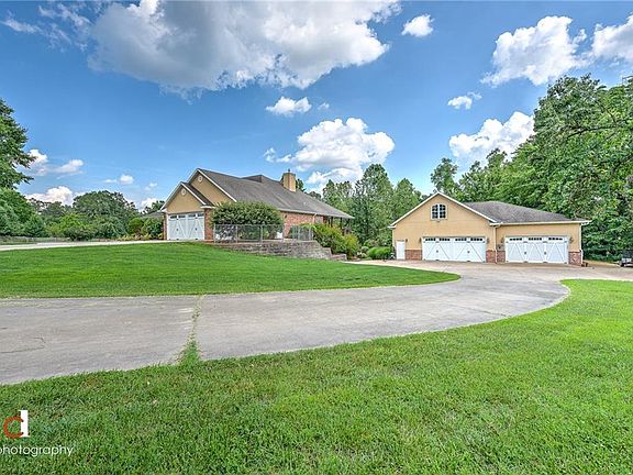 Incredible 5 Acre property with heated pool!!! Very rare opportunity to own 5 acres in this highly desired southwest Rogers location. This property includes a 5,848 square foot home with a 3 car garage, beautiful heated in ground pool w/slide, additional 1600 square foot, partially heated garage with a 12,500lb commercial vehicle lift and 13ft. ceiling + 400 sq. ft. above garage for storage or that could be finished, a dirt bike track in the wooded acreage behind the home and a huge cleared side yard perfect for a soccer field. Inside the home you'll find a split floorplan on the main level with a beautiful master suite and balcony overlooking the pool, perfect for morning coffee! Huge walkout basement-large living entertaining space w/ windows to pool, kitchenette, media room, additional bedroom, storm shelter and tons of storage space. Fenced pool area is beautifully landscaped and includes fantastic bar and awning. This house is designed for entertaining!!