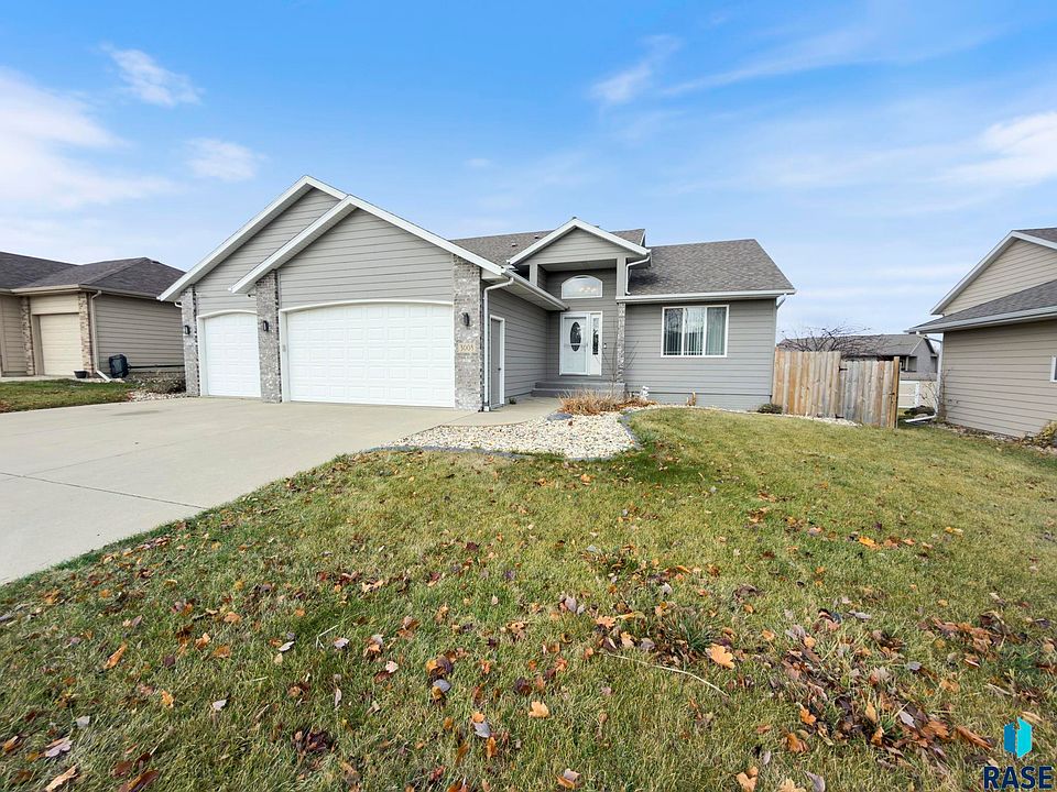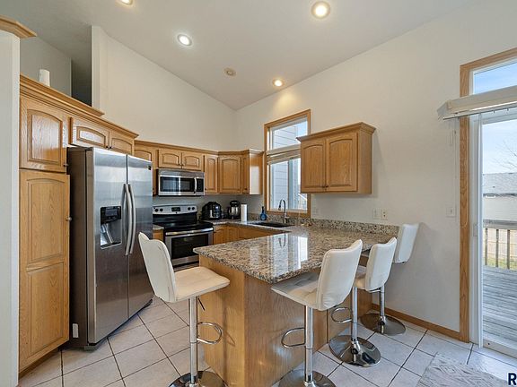 Stunning 5 bedroom 3 full bathrooms & 3 stall garage in South Sioux Falls. Primary suite is spacious w/walk-in closet & full bath w/2 sinks & granite countertops. Home features 3 bedrooms all on the same level. Kitchen includes stainless steel appliances, granite countertops & open to the dining room. Living room has a vaulted ceiling & great natural light. Family room is large w/gas fireplace & a walkout door to the backyard w/patio & deck. Lowest level includes a huge hobby room & huge 5th bedroom. The 3-stall garage features drain & water hook-ups.