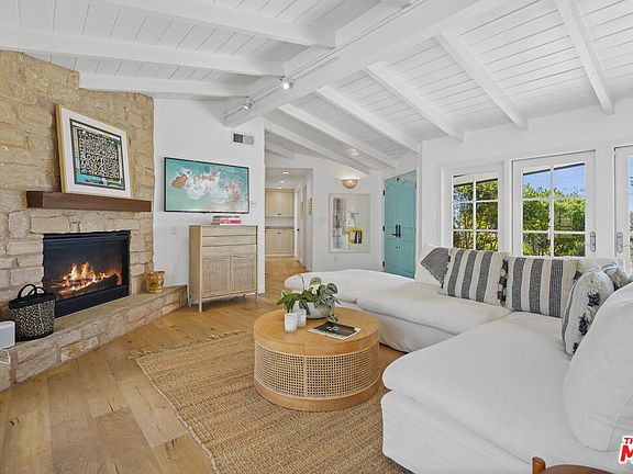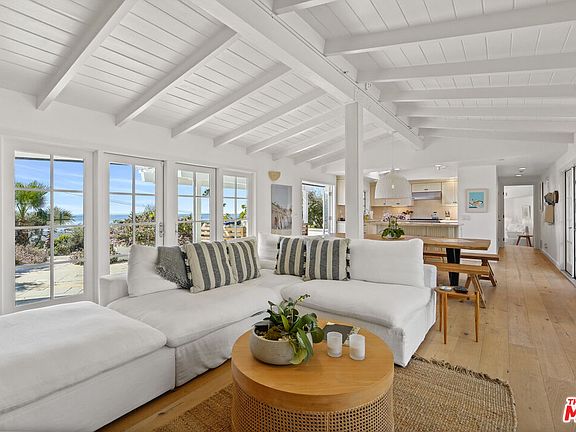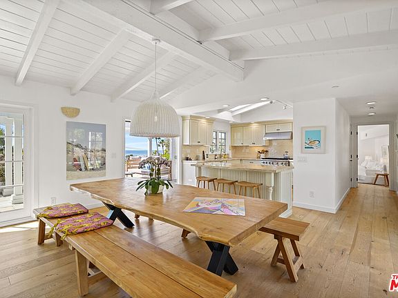 Available March 15- July 2026. This stunning Malibu Park updated single-story ranch-style home embodies the epitome of beachside living, offering breathtaking ocean views from almost every room. The great room boasts high beamed ceilings, oak wood floors, and multiple French doors that lead to a spacious ocean view covered patio, along with a lush grassy front yard and a charming patio back yard. Relax in the living room by the rough-hewn stone fireplace, adding to the cozy coastal ambiance.The gourmet kitchen is a culinary haven, featuring large skylights, high-end appliances, polished Taj Mahal countertops, custom cabinets, and a convenient breakfast bar. The bright and open floor plan creates a seamless flow, perfect for hosting parties and indoor/outdoor entertaining. This home includes two-bedroom suites, one with an office, as well as two ocean-view bedrooms with bay windows and two bathrooms. The ocean view owner's suite offers a serene retreat, with a raised entry, high ceilings, a spa-style bath, a custom closet, and French doors opening onto the front patio and the backyard. End the day playing ping pong, sitting in one of many outdoor seating areas, roll in the large grassy yard or sit in the cedar wood dry sauna. It's the Ultimate beach Vibe. For added peace of mind, the property is gated and fenced for security. Fully furnished and available for monthly rentals, this home is ready to provide a luxurious coastal lifestyle. Don't miss the opportunity to call this beachside oasis your own. (INCLUDES ALL UTILITIES, WEEKLY CLEANING, GARDENER)