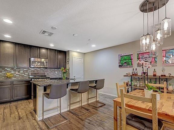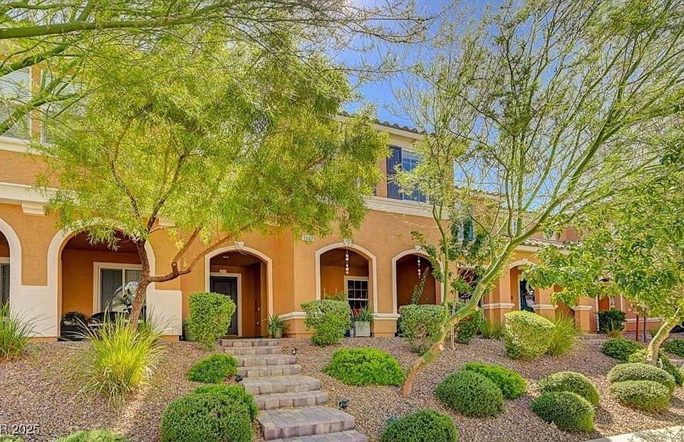 Gorgeous Inspirada townhome. 3 bed, 2 1/2 bath + loft and 2 car garage. Beautiful upgrades, granite counter tops, customer backsplash, stainless appliances, upgraded cabinets, pantry, luxury laminate floors throughout lower level and staircase and loft, upgraded carpet in three bedrooms, large primary bedroom separate from others with a custom closet. Large covered patio area in front with lots of room for entertaining. 2 car attached garage. Community offer pools, parks, tennis, BB ball courts