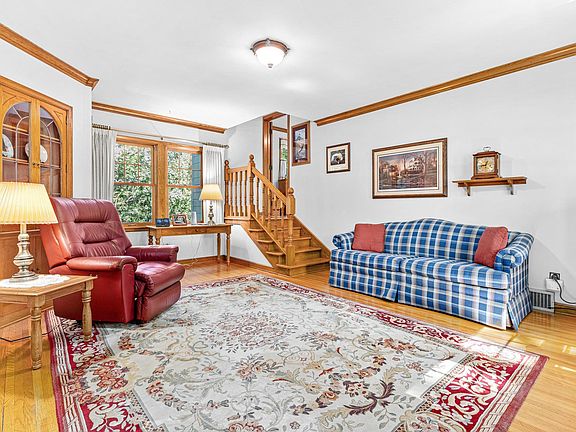 Welcome to this charming story and a half home sitting on a 1/2-acre lot in the highly sought after Mounds View school district. Enjoy watching deer out on your back deck and the beauty of nature all around you. You'll love the extra detached garage that is insulated and has AC, as well as bonus space above ready to finish or to use as storage. Inside you are greeted by beautiful hardwood floors and crown molding as well as plenty of natural light from beautiful windows which flow perfectly to the primary bedroom and give you amazing light. You'll also find another bedroom with hardwood floors under the carpet as well as a full bath with custom milled door and cabinets. The dining nook off the kitchen has plenty of space and allows you to walk directly to your backyard deck. Upstairs features an additional bedroom that feels like it’s out of a story book. The lower level is unfinished and ready for your ideas. This home has been meticulously maintained and is ready to enjoy!