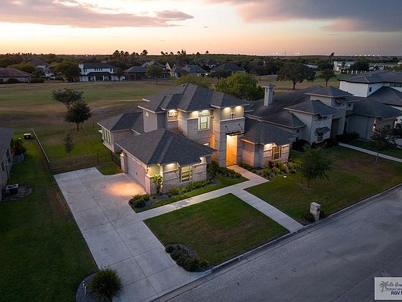 Located in Treasure Hills Gated Community, this 5 bedroom 3 bathroom home delivers space, style, and privacy in one of Harlingen's most sought-after addresses. From the classic brick veneer to the resort-style pool with two water features and golf course views, every detail stands out. Inside, the open floor plan flows effortlessly with custom wall accents, built-ins, and the primary suite conveniently located downstairs. Outside, the backyard becomes your private retreat. Tesla charger, smart sprinkler system, security system, all included. All appliances stay. Meticulously maintained and ready for its next owner, this is a rare opportunity to own one of the most desirable homes in the area.